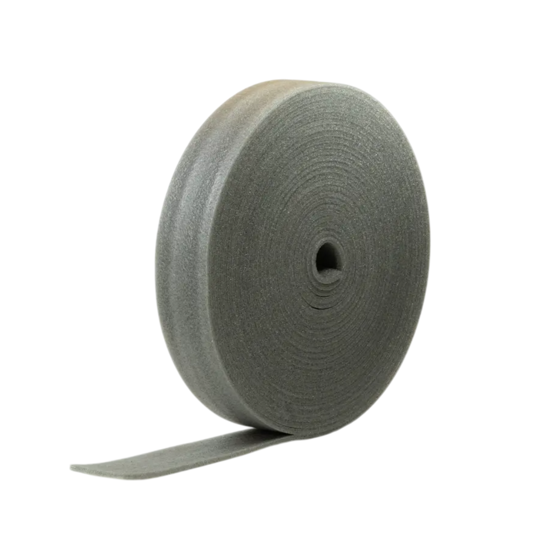 Banda de Sello Anti Lechadas fabricada en espuma de polietileno de celda cerrada, diseñada para evitar la filtración de lechada durante el hormigonado y lograr un acabado limpio y uniforme.